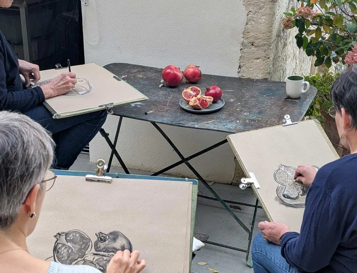 Provence Kreativurlaub, Zeichenkurse, Malkurse, kuensterliche Drucktechniken in Südfrankreich.